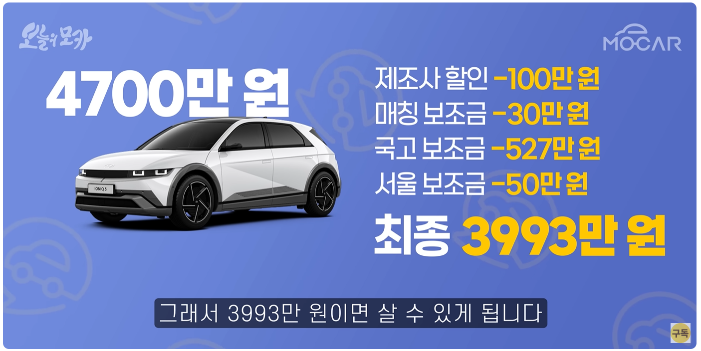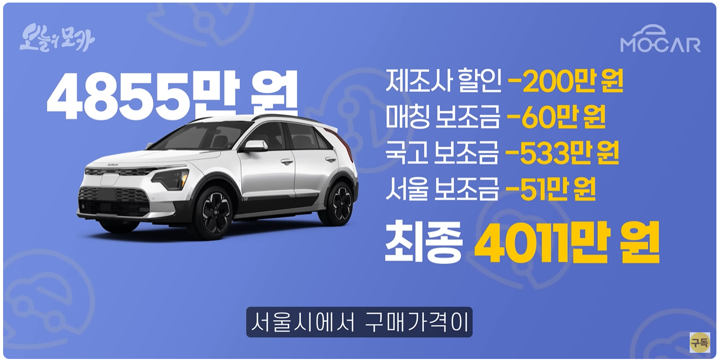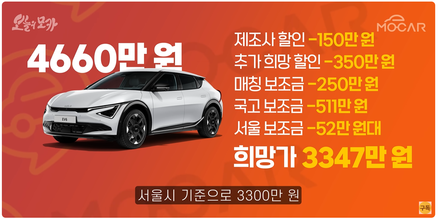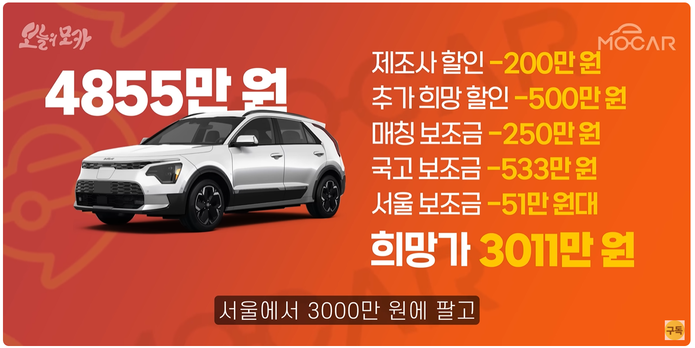 - 할인 + 보조금 받으면 EV3보다도 저렴해질 수 있음