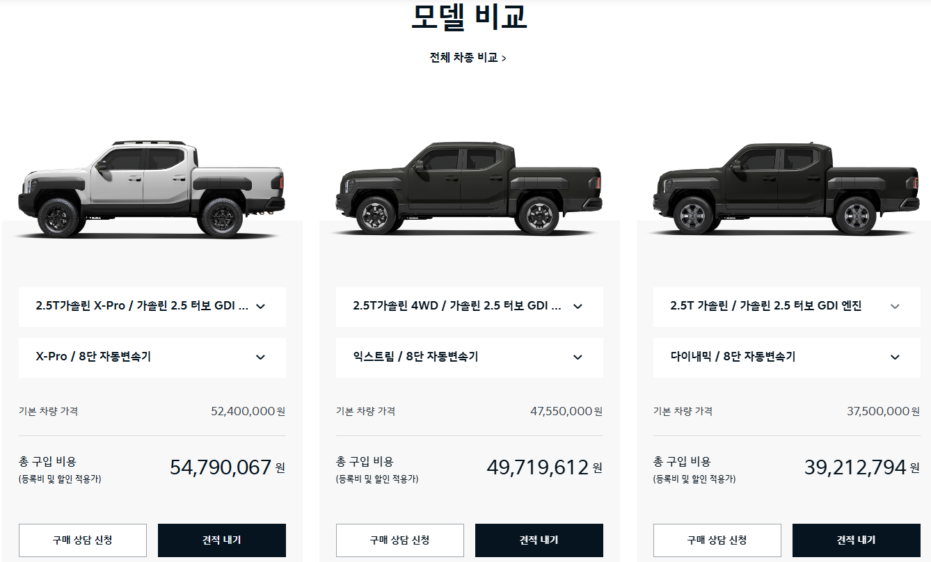 소나타 중간 트림과 비슷한 가격대에, 이 정도의 오프로드 차량을 구매할 수 있다는 건 분명히 큰 장점입니다.