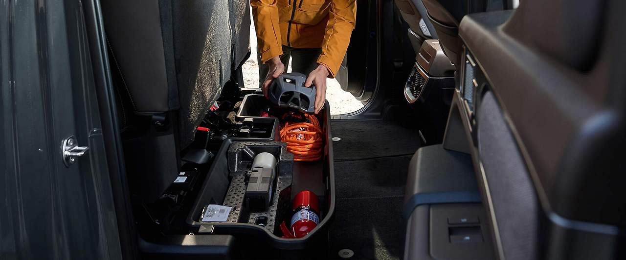 뒤쪽 더블데커 수납 시스템은 픽업트럭의 실용성을 극대화해 줍니다.