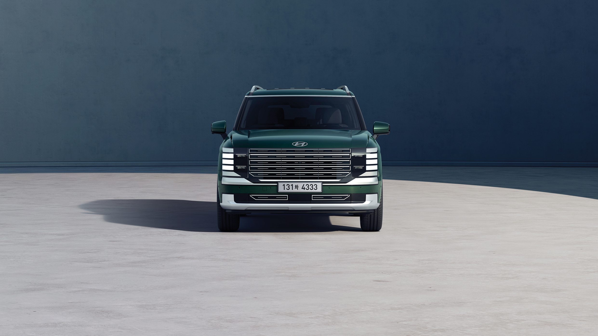 현대 팰리세이드는 단연 압도적인 크기와 독특한 색상, 그리고 웅장한 전면부 디자인으로 도로 위에서 시선을 사로잡습니다.