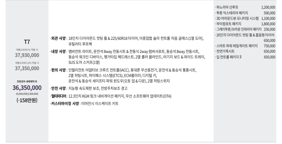 ✔ T5: 3,140만 원부터 / T7: 3,635만 원부터