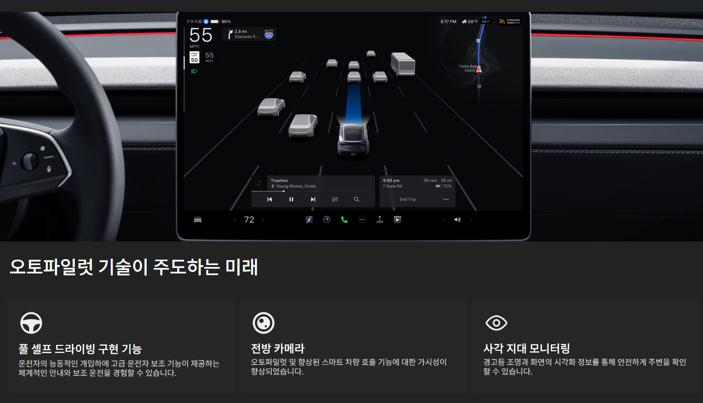 한국에서는 아직 FSD(완전자율주행)은 정식 출시되지 않았지만, 내비게이션 기반 오토파일럿은 사용 가능하며, 주행 중 안전성과 편의성을 크게 높여줍니다. 다만, 미국에서 FSD 경험 이후 국내 버전을 타면 아쉬움이 느껴질 수 있습니다.